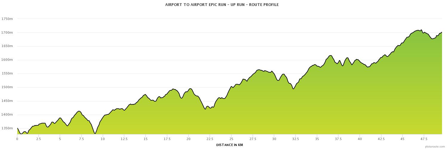 Route map for Airport To Airport Epic Run - Up Run