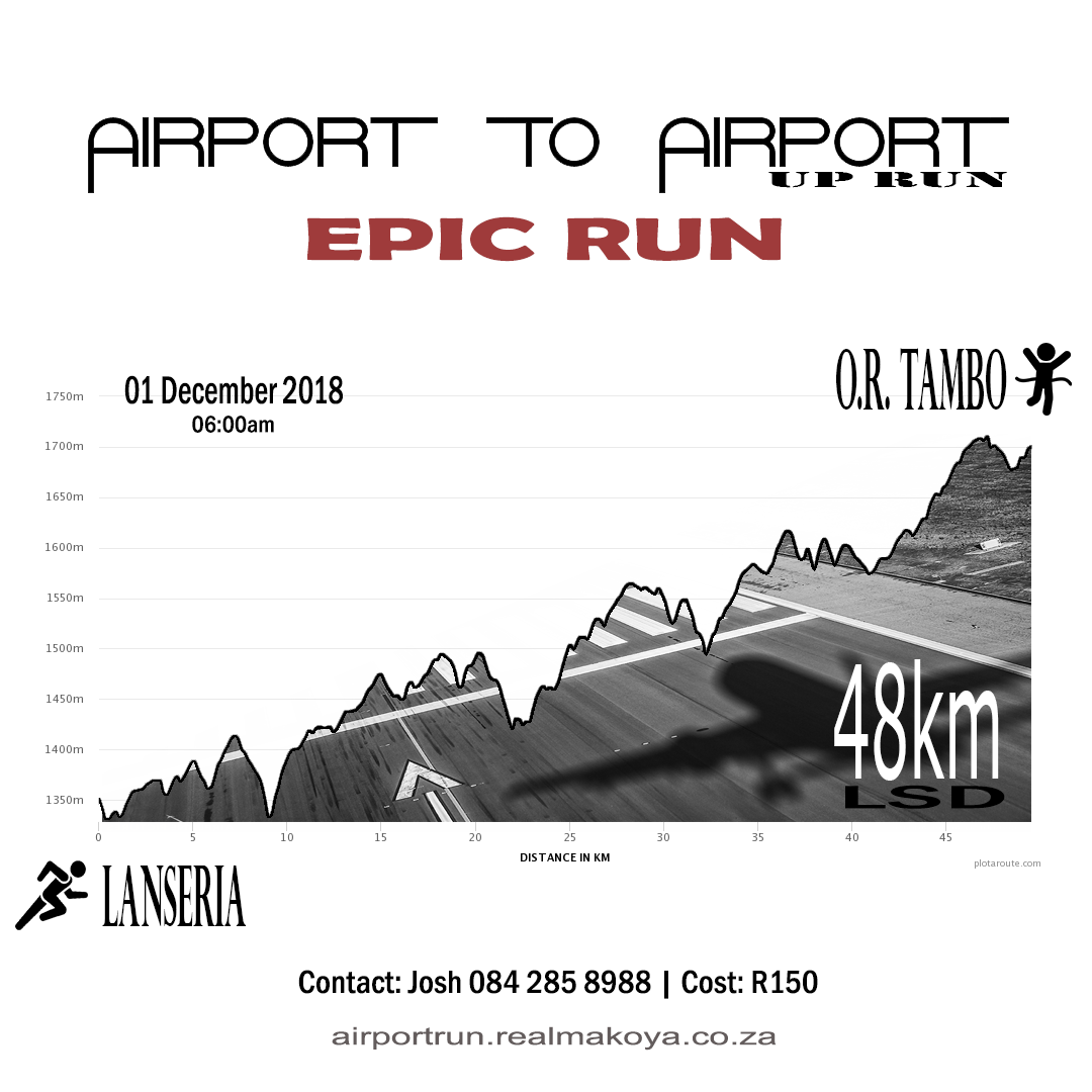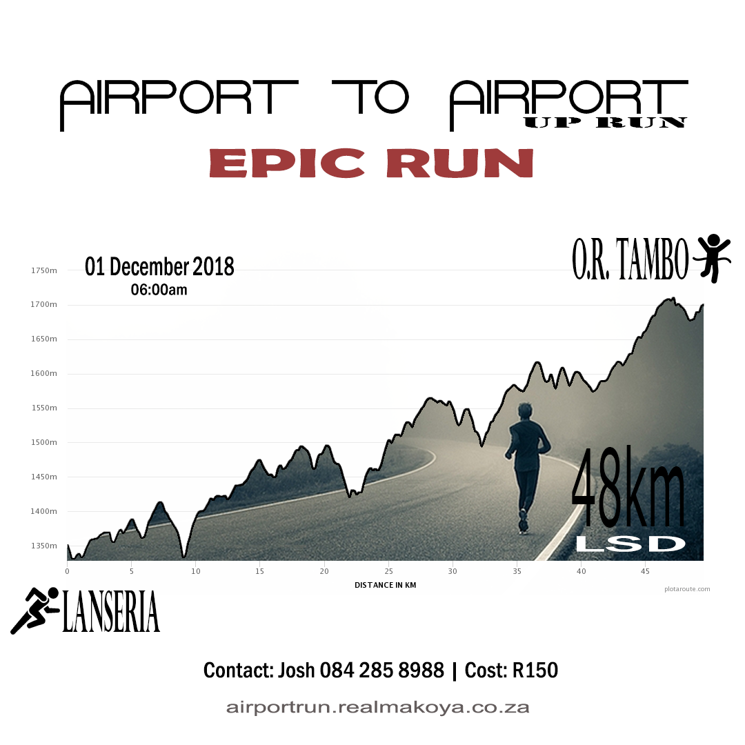 It’s that time of the year again. We go back to our favourite route between Lanseria and O.R Tambo International Airports, but this time we are running it in reverse. Yes; we are running it the other way around. The UP RUN. Join us again for this exiting, tough and EPIC 48km LSD Social Run between two South African international entry points.